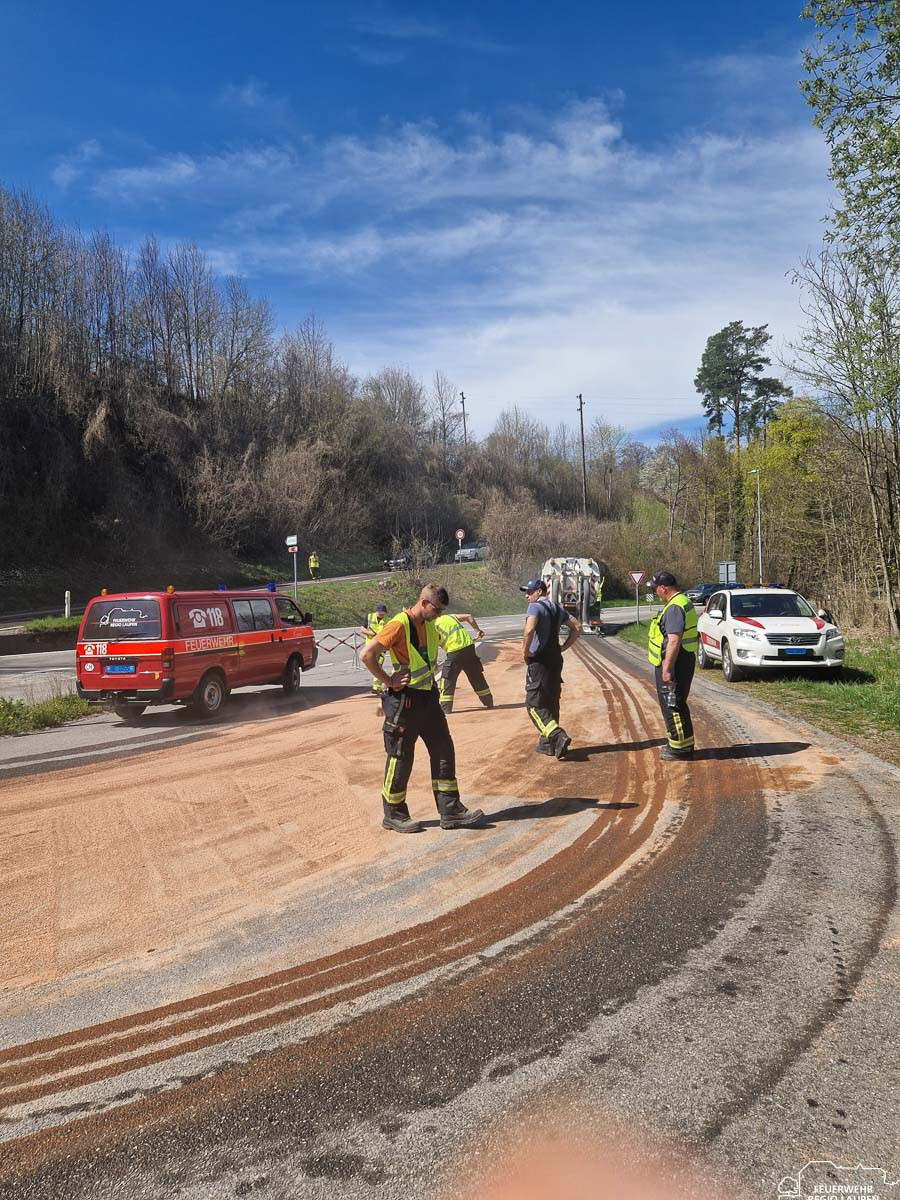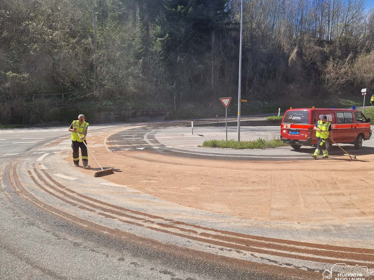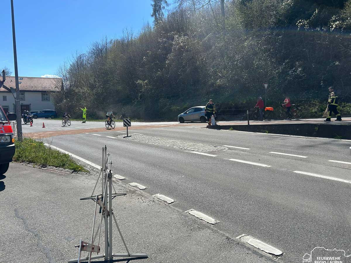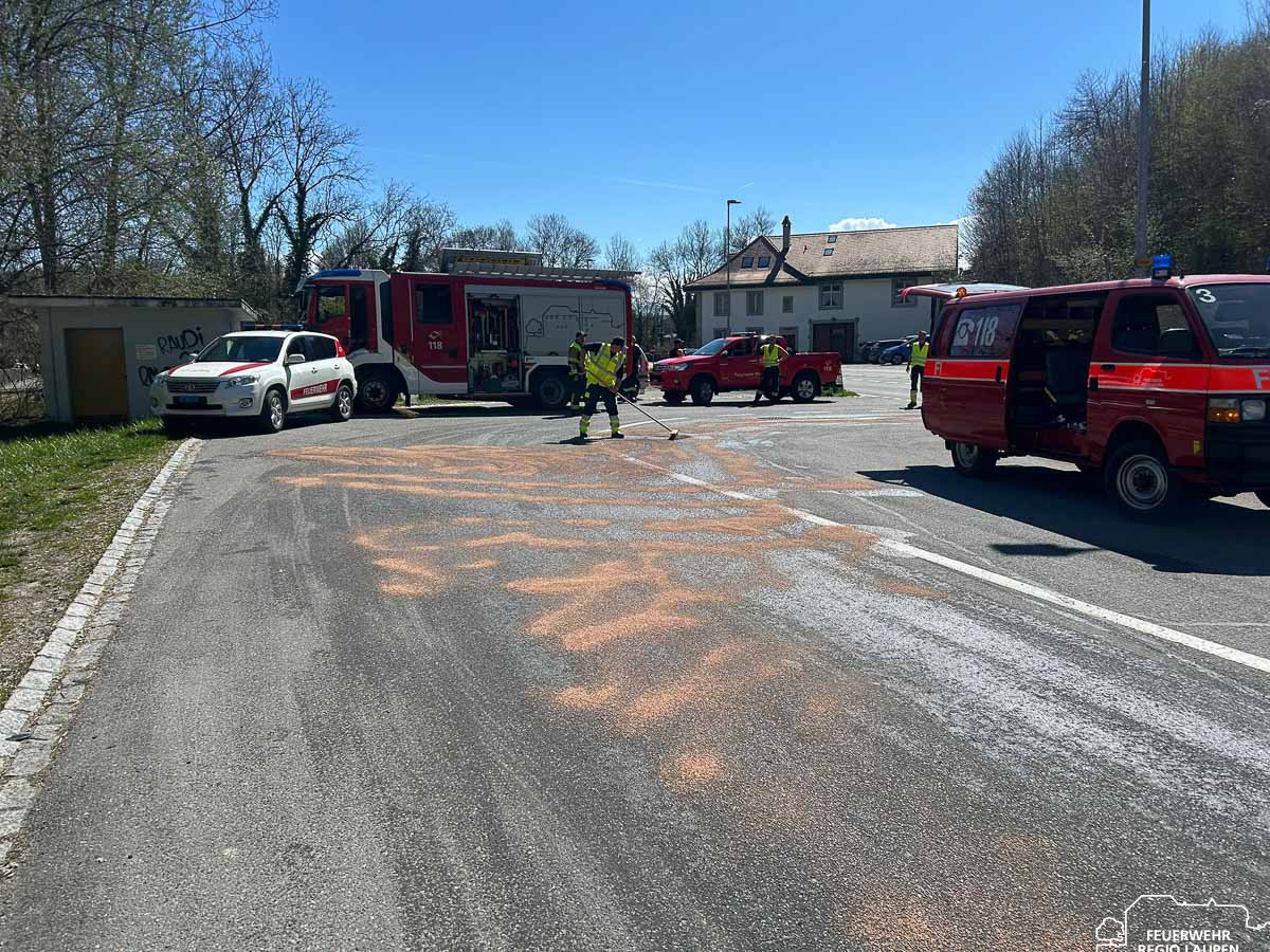 Am Montag, 06.04.2026, wurden wir um 13:21 Uhr zu einem Öl-/Benzinereignis an der Saanebrücke (Ausweichstelle) in Laupen alarmiert. Vor Ort stellte sich eine Ölverschmutzung auf der Fahrbahn heraus, welche eine Umweltgefährdung darstellte. Mit insgesamt 15 AdF im Einsatz wurde die betroffene Fläche mittels Ölbinder abgestreut und anschliessend gereinigt. Der rund zweistündige Einsatz konnte nach erfolgreicher Schadensbehebung beendet werden.
